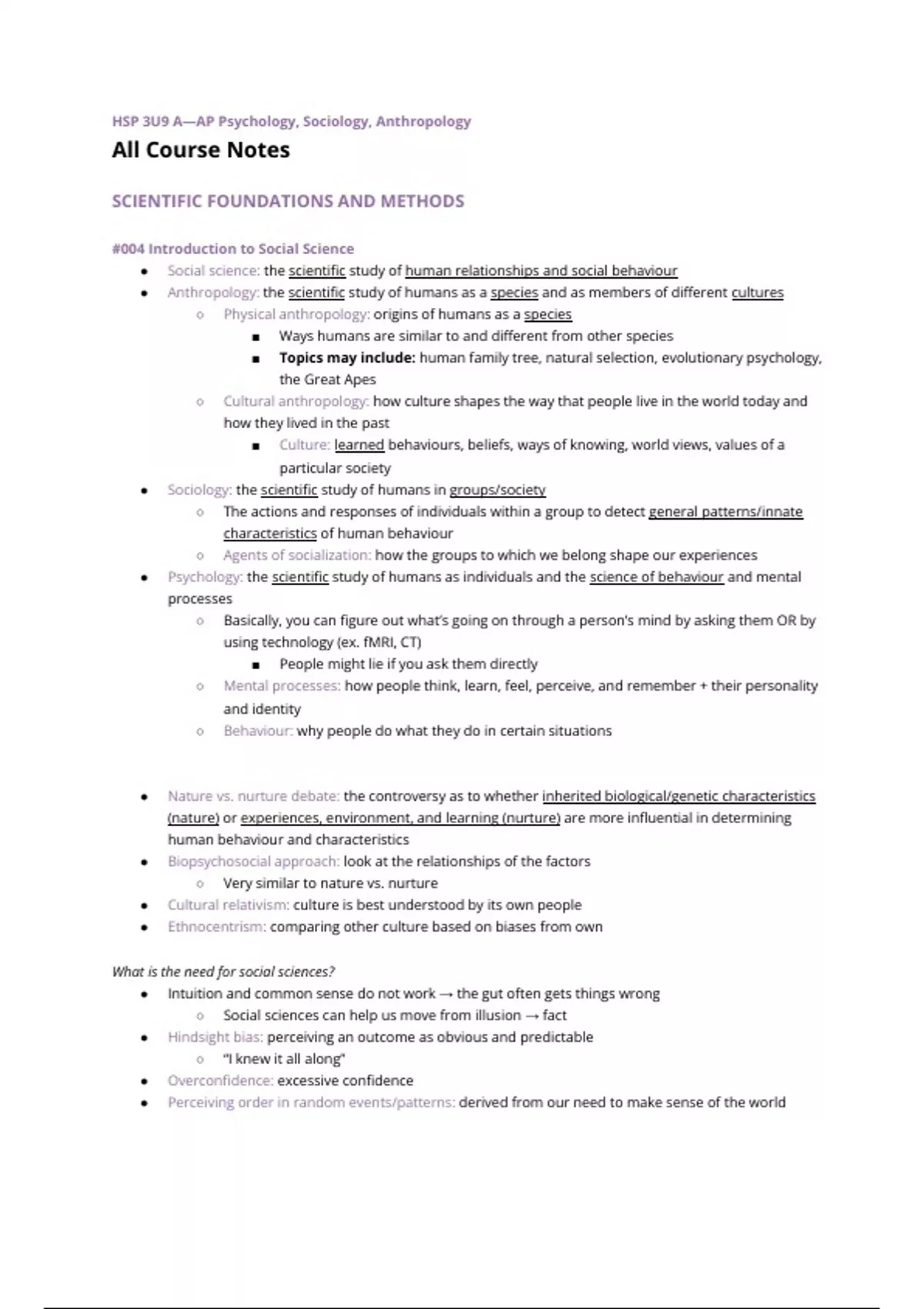 All AP/Ontario Grade 11 University psychology notes