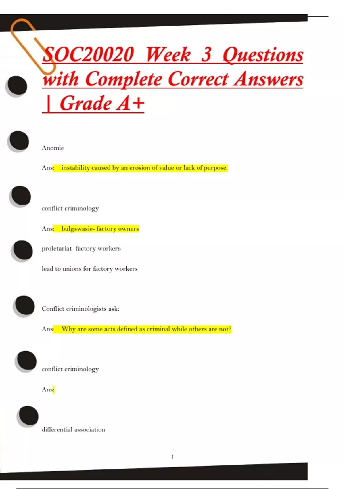 SOC20020 Week 3 Questions with Complete Correct Answers | Grade A+