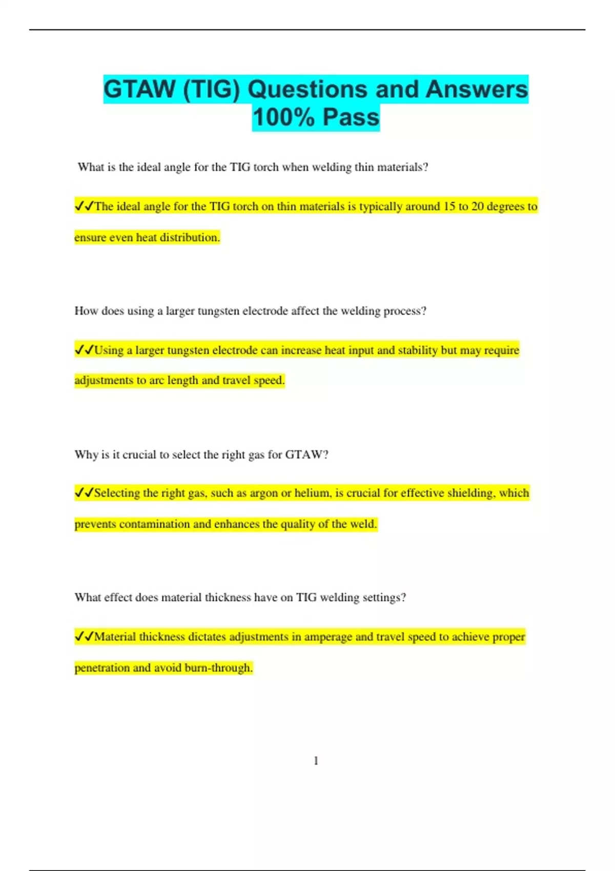TIG WELDING REVIEW QESTIONS AND ANSWERS ALREADY PASSED
