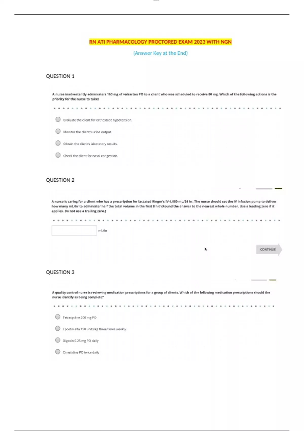 ATI RN Pharmacology Proctored Exam with NGN | 100% Score on 70 NGN Questions with Verified Solutions