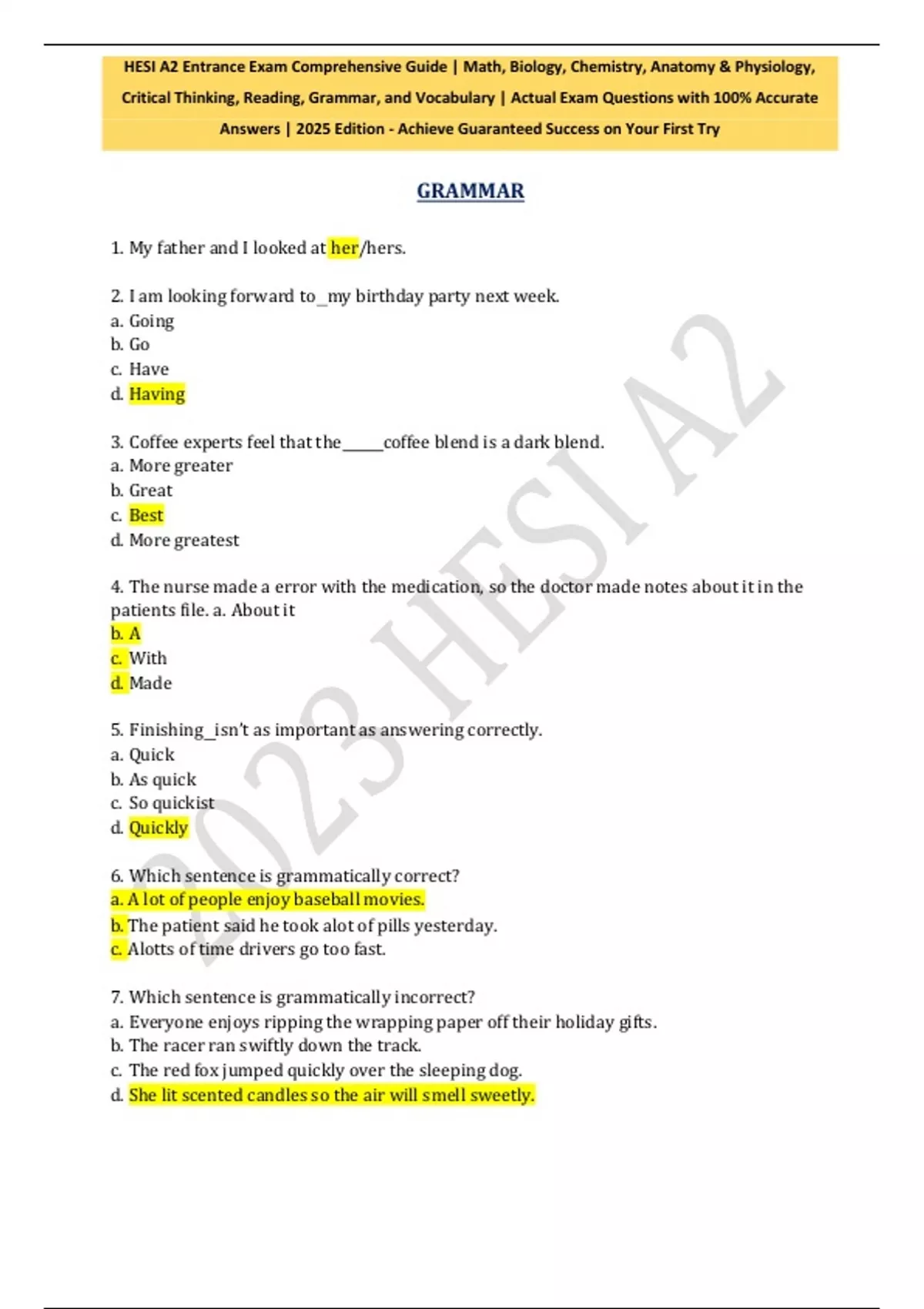 HESI A2 Exam Essentials 2025 Practice Q&A for Biology, Math, Reading, Grammar & Vocabulary with Screenshots