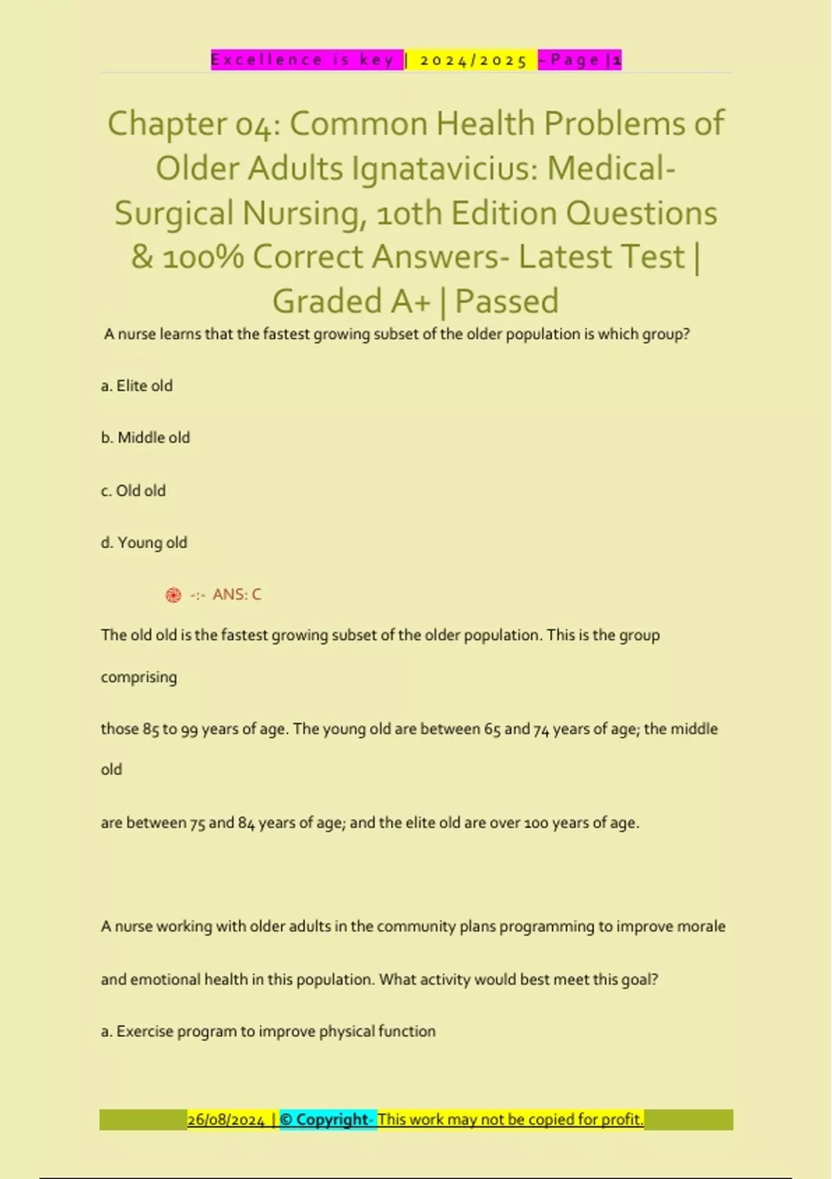 Chapter 04: Common Health Problems of Older Adults Ignatavicius: MedicalSurgical Nursing, 10th Edition Questions & 100% Correct Answers- Latest Test | Graded A+ | Passed