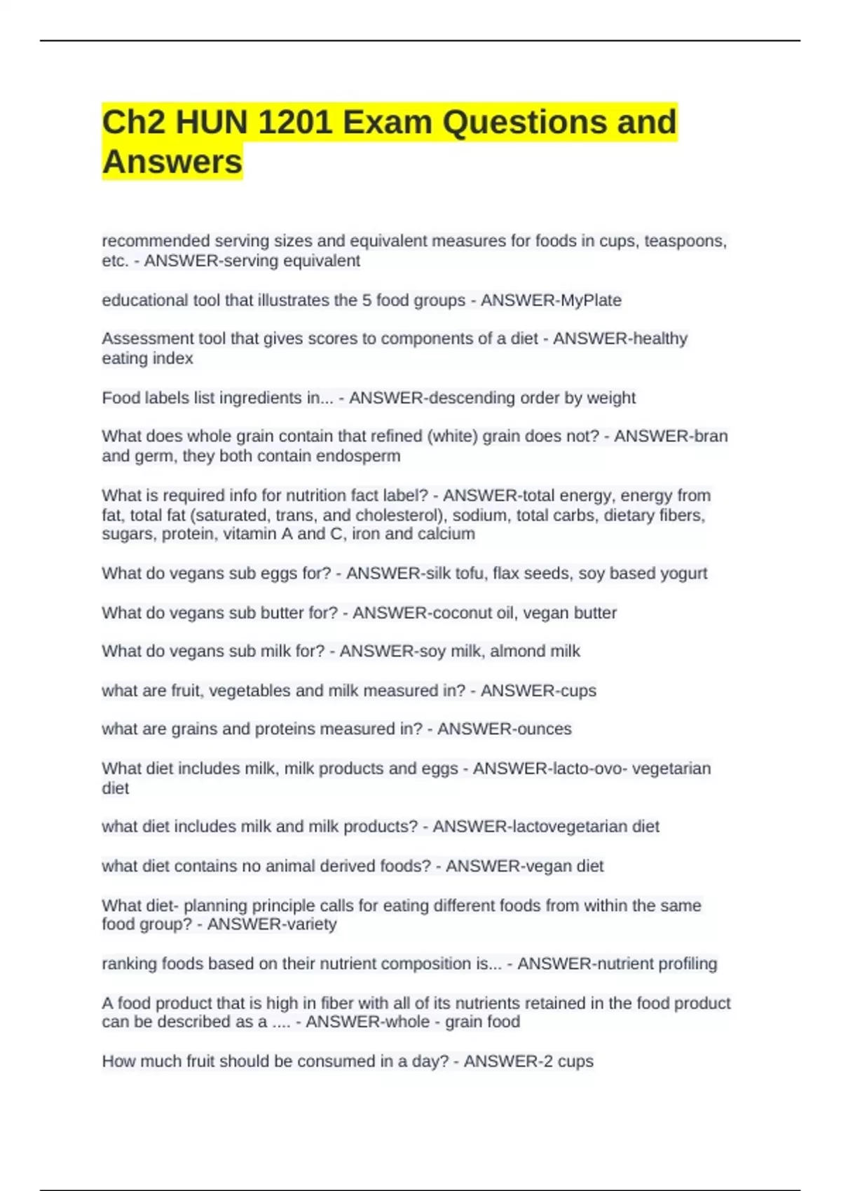 Exam (elaborations) Review Exam 2 HUN 1201 Questions and Answers Exam (elaborations) Review Exam 1 Nutrition HUN 1201 Q&A Exam (elaborations) Nutrition Midterm HUN1201 IRSC Exam Questions and Answers Exam (elaborations) Nutrition HUN 1201 Final Exam Questions and Answers Exam (elaborations) Nutrition Exam 1 Study Guide (FSW HUN1201) Questi