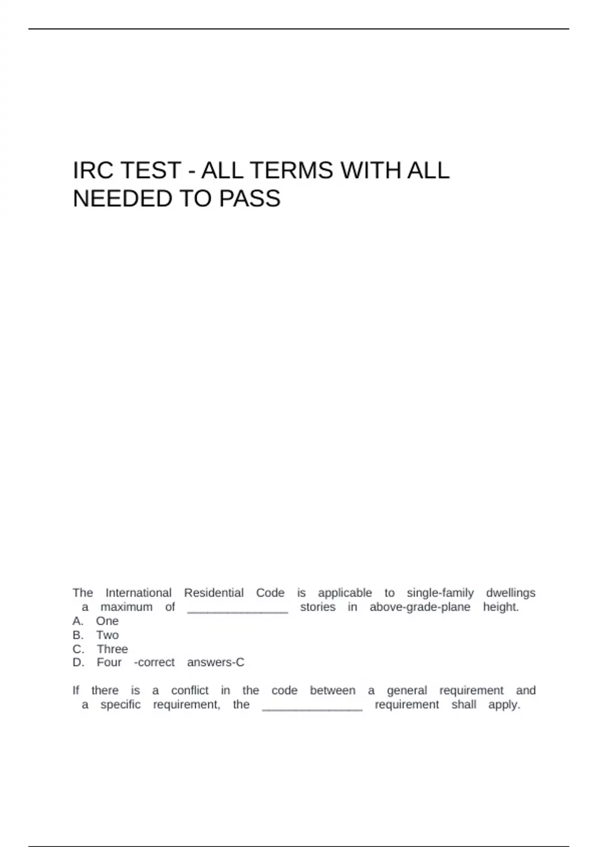 IRC TEST QUESTIONS WITH 100% CORRECT ANSWERS