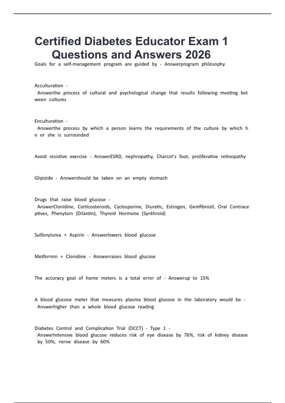 Certified Diabetes Educator Exam 1 Questions and Answers 2026