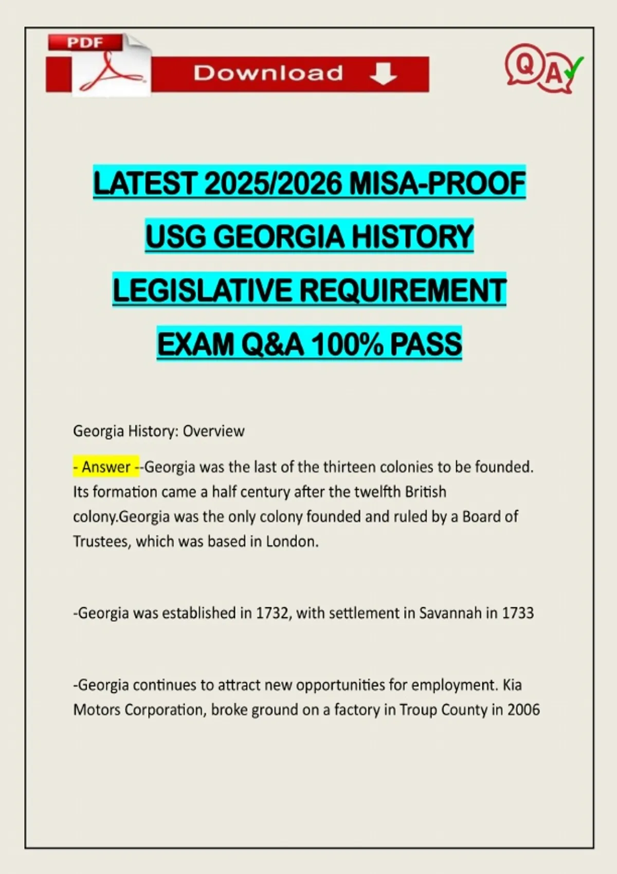 PACKAGE DEAL::: GEORGIA HISTORY LEGISLATIVE EXAMS ACTUAL 2026 UPDATE