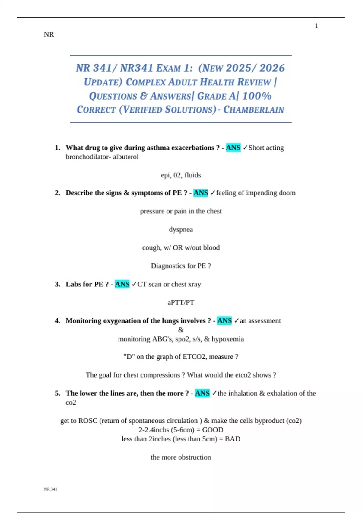 NR 341 Adult Health Exam 1, Dysrhythmia Interpretation & Midterm Exam | Real Exam Questions & Answers PACKAGE DEAL