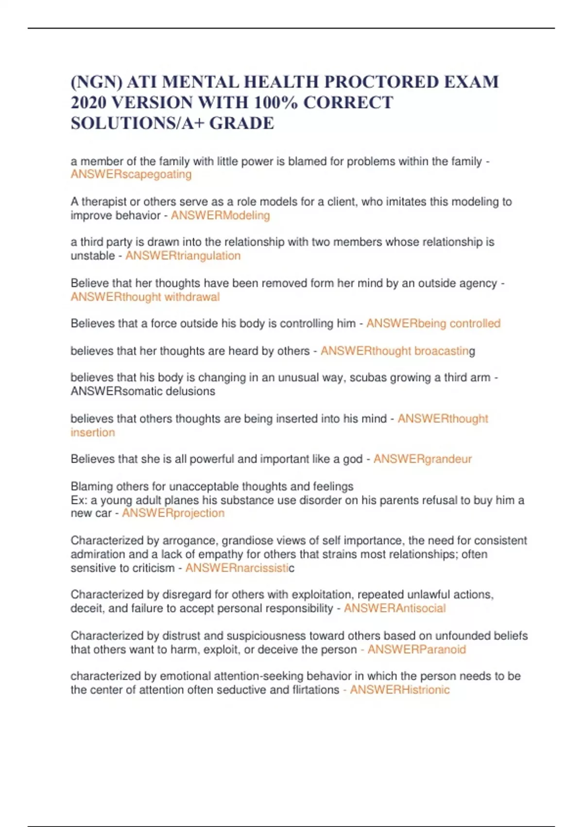 Exam (elaborations) ATI Mental Health Proctored 2026 Exam – 100% Accurate Solutions & Rationales 2 Exam (elaborations) ATI MENTAL HEALTH PROCTORED EXAM 3 VERSIONS (TESTBANK , PRACTICE EXAM QUESTIONS AND A NEW UPDATED STUDY GUIDE ) EACH VERSION CONTAINS COMPLETE ACCURATE QIUESTIONS WITH WELL ELABORATED ANSWERS (CORRECT VERIFIED ANSWERS) A NEW UPDAT