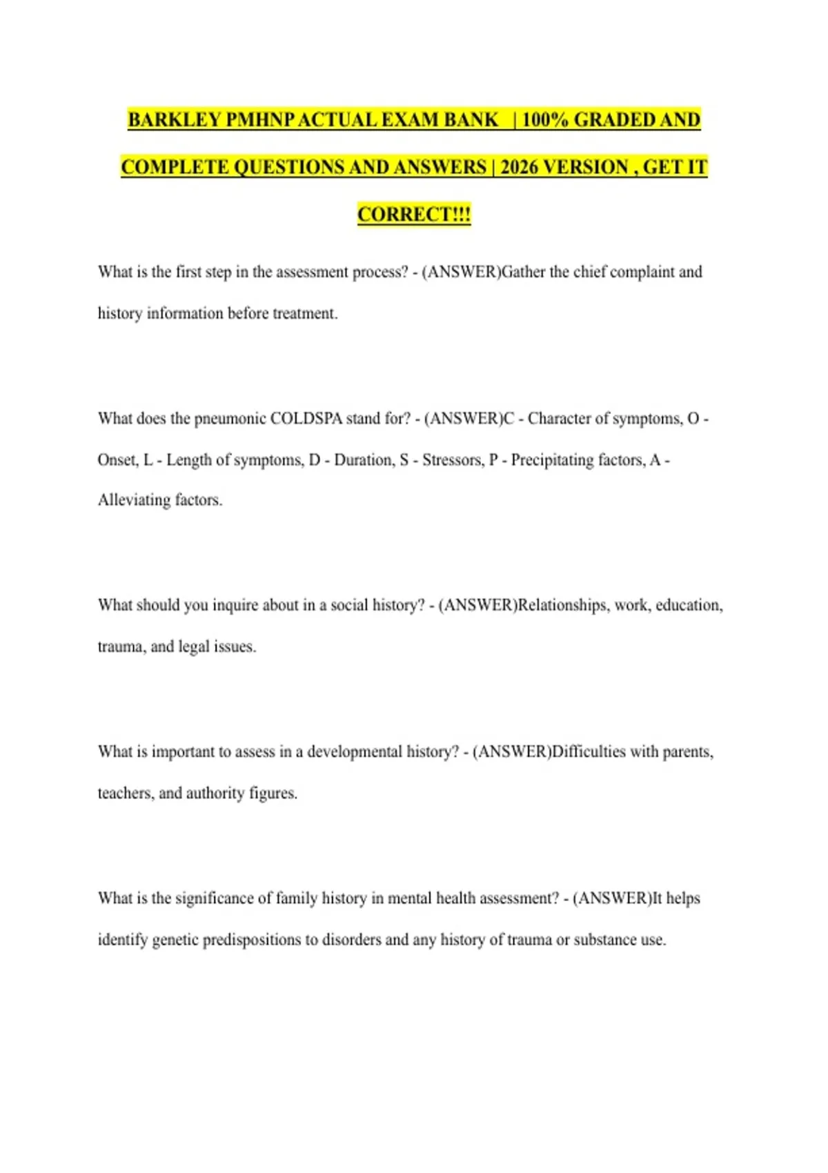 PACKAGE DEAL FOR BARKLEY PMHNP ACTUAL EXAM | 100% GRADED | REAL & COMPLETE QUESTIONS AND ANSWERS | 2026 VERSION , GET IT CORRECT!!!