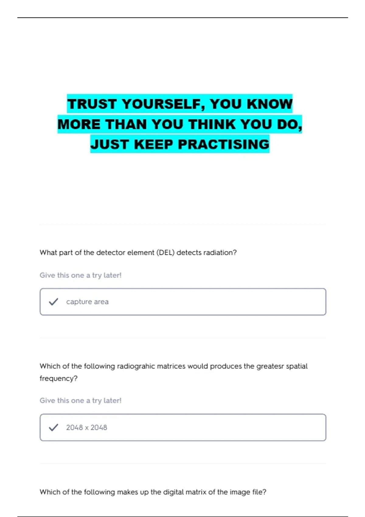 RTBC DIGITAL RADIOGRAPHY ASSESSMENT QUESTIONS WITH CORRECT ANSWERS