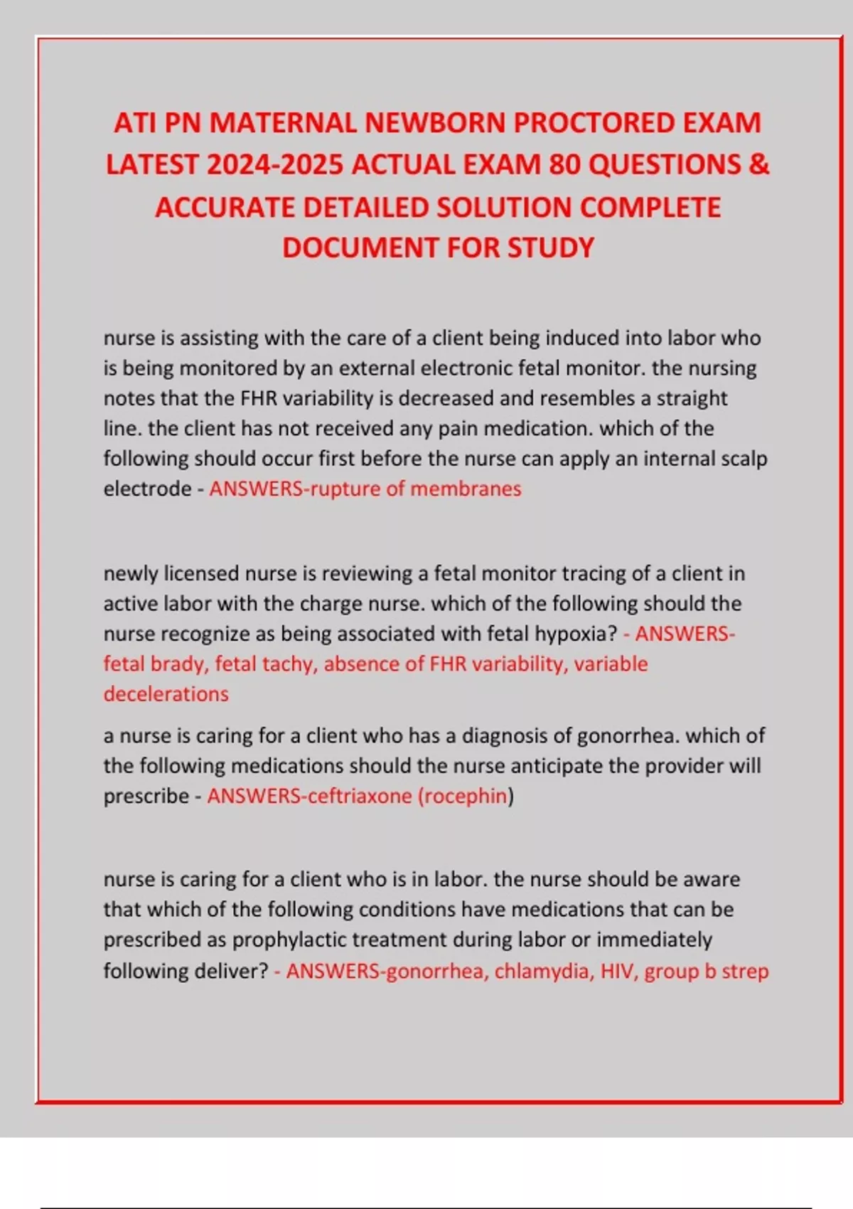 ATI RN LEADERSHIP PROCTORED EXAM COMPREHENSIVE EXAM QUESTIONS WITH VERIFIED AND 100 % ANSWERS (DETAILED AND ELABORATED) A+ GRADED LATEST UPDATE ATI RN LEADERSHIP PROCTORED EXAM COMPREHENSIVE EXAM QUESTIONS WITH VERIFIED AND 100 % ANSWERS (DETAILED AND ELABORATED) A+ GRADED LATEST UPDATE