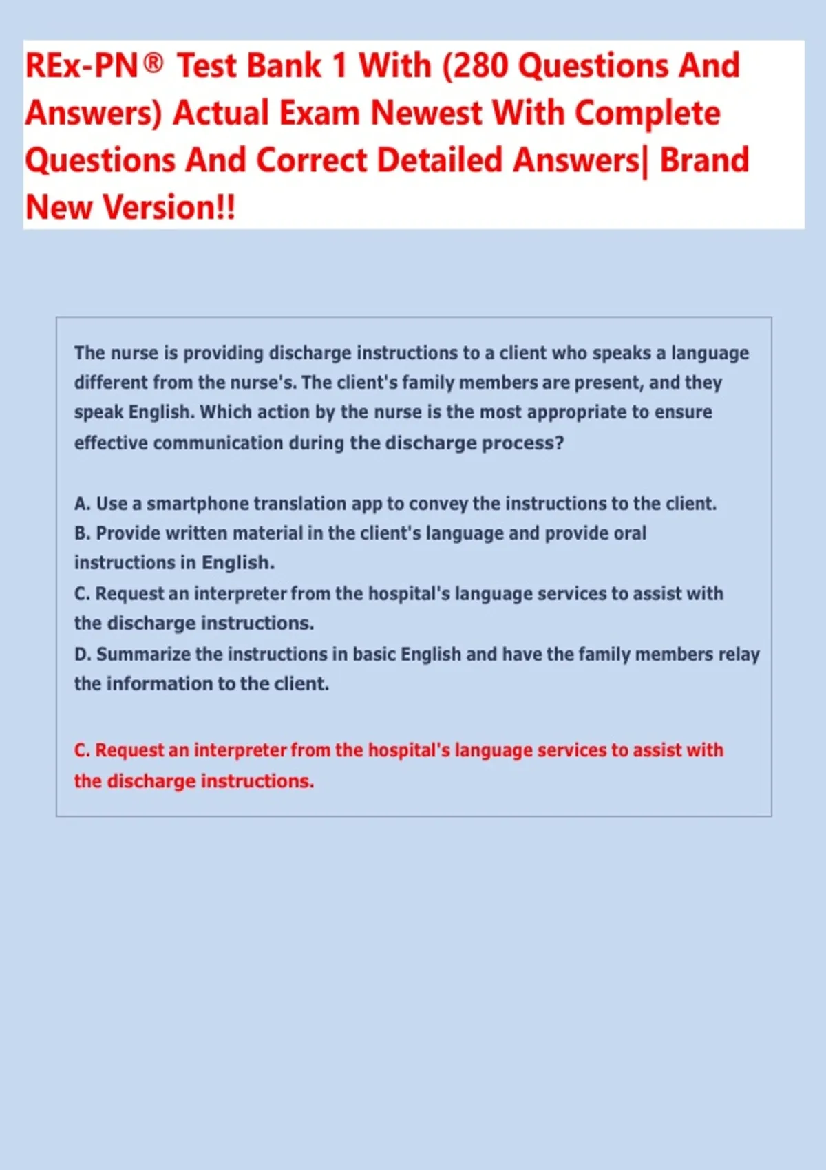 REx-PN® Test Bank With (multiple Questions And Answers) Actual Exam Newest With Complete Questions And Correct Detailed Answers| Brand New Version!! REx-PN® Test Bank With ( multiple Questions And Answers) Actual Exam Newest With Complete Questions And Correct Detailed Answers| Brand New Version!!