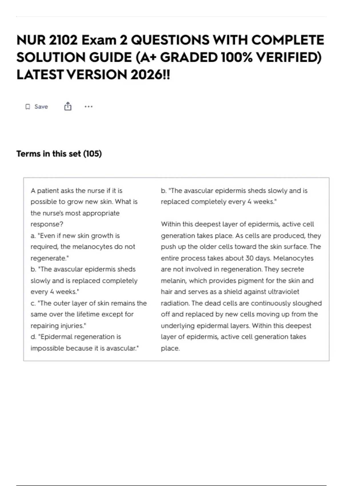 NUR 2102 Exam 2 QUESTIONS WITH COMPLETE