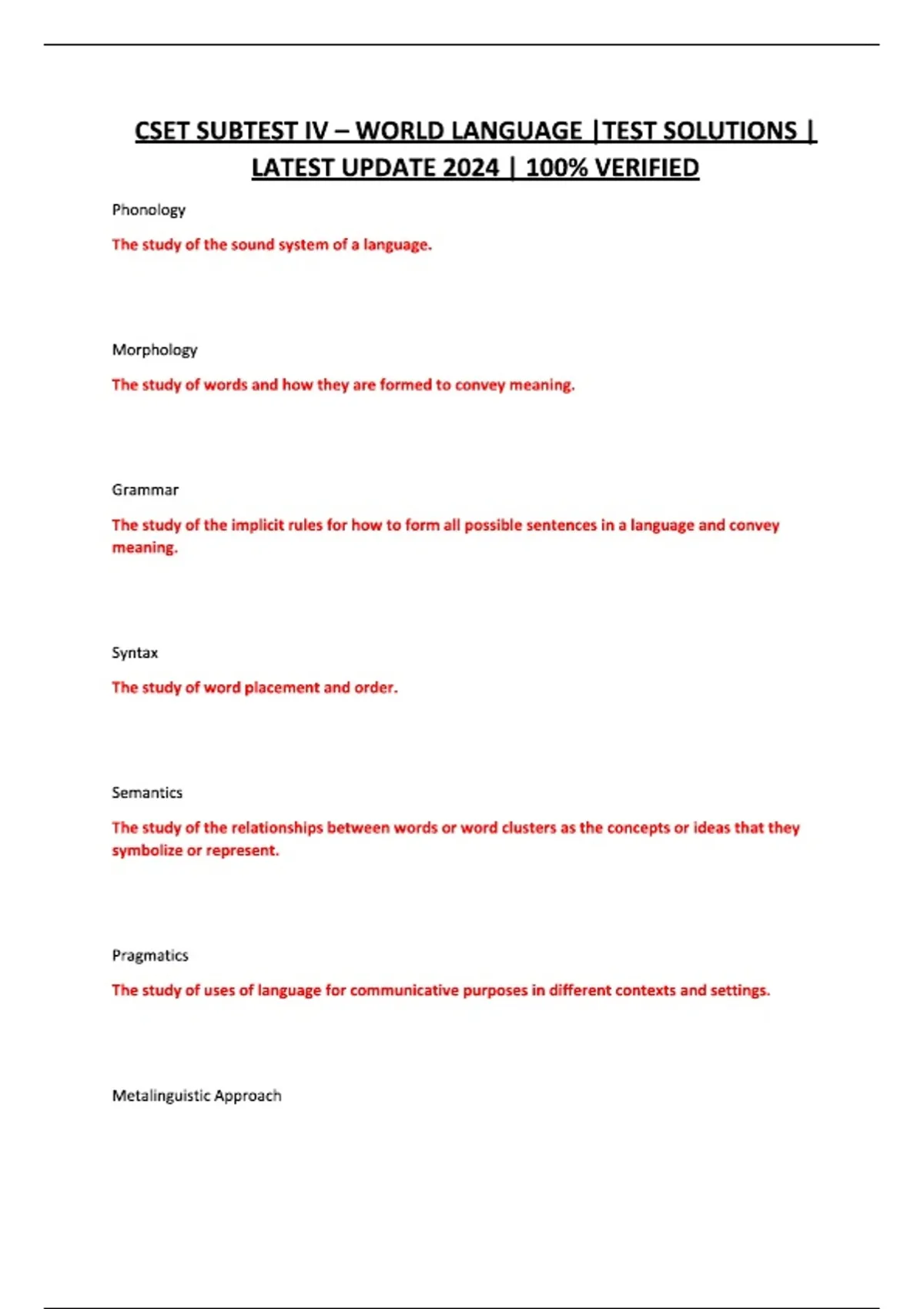 CSET Subtest IV – World Language Test – Questions and Answers Solved Correctly