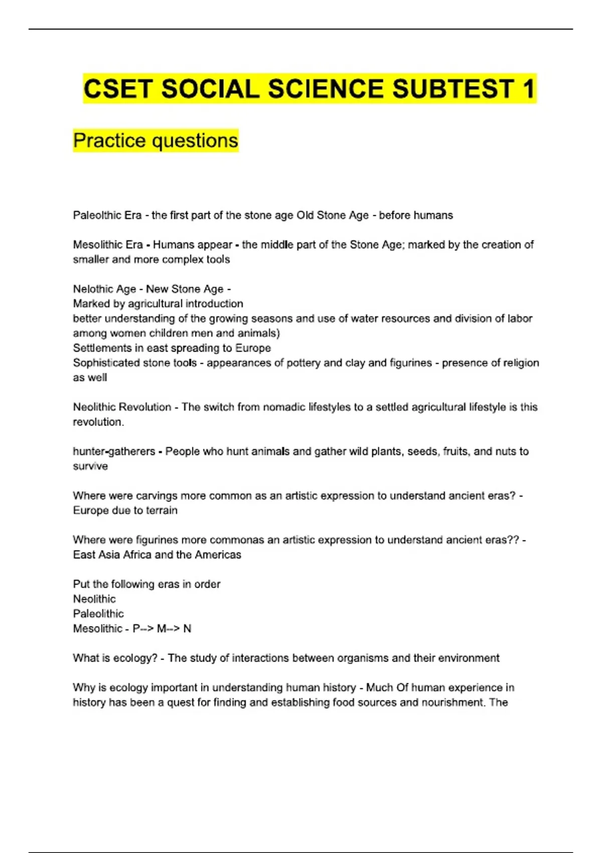 CSET Social Science Subtest 1 – Questions and Answers Solved Correctly