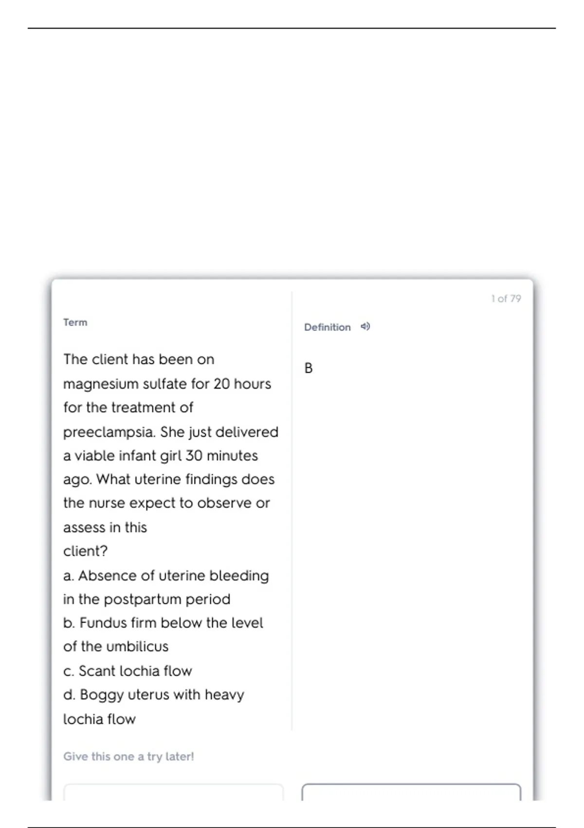 d. Boggy uterus with heavy
