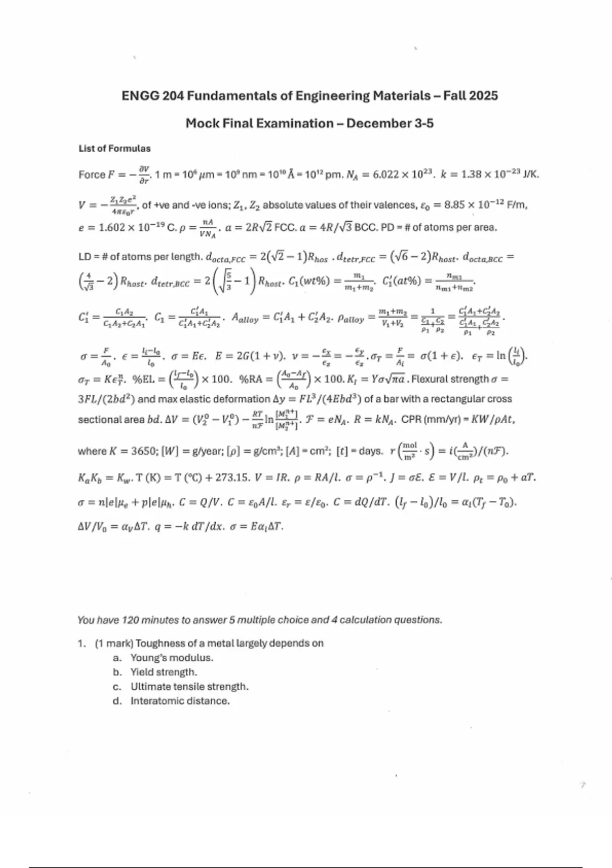 You have 120 minutes to answer 5 multiple choice and 4 calculation questions.