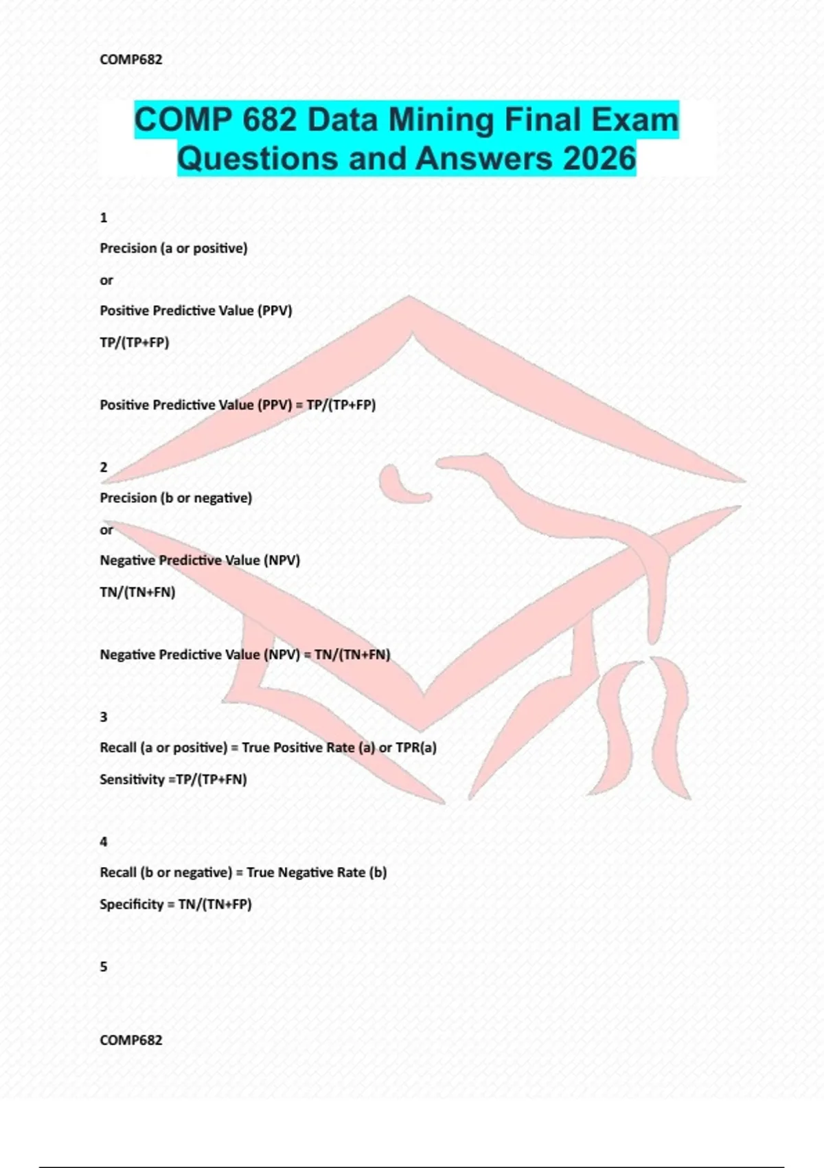 COMP 682 Data Mining Final Exam Questions and Answers 2026