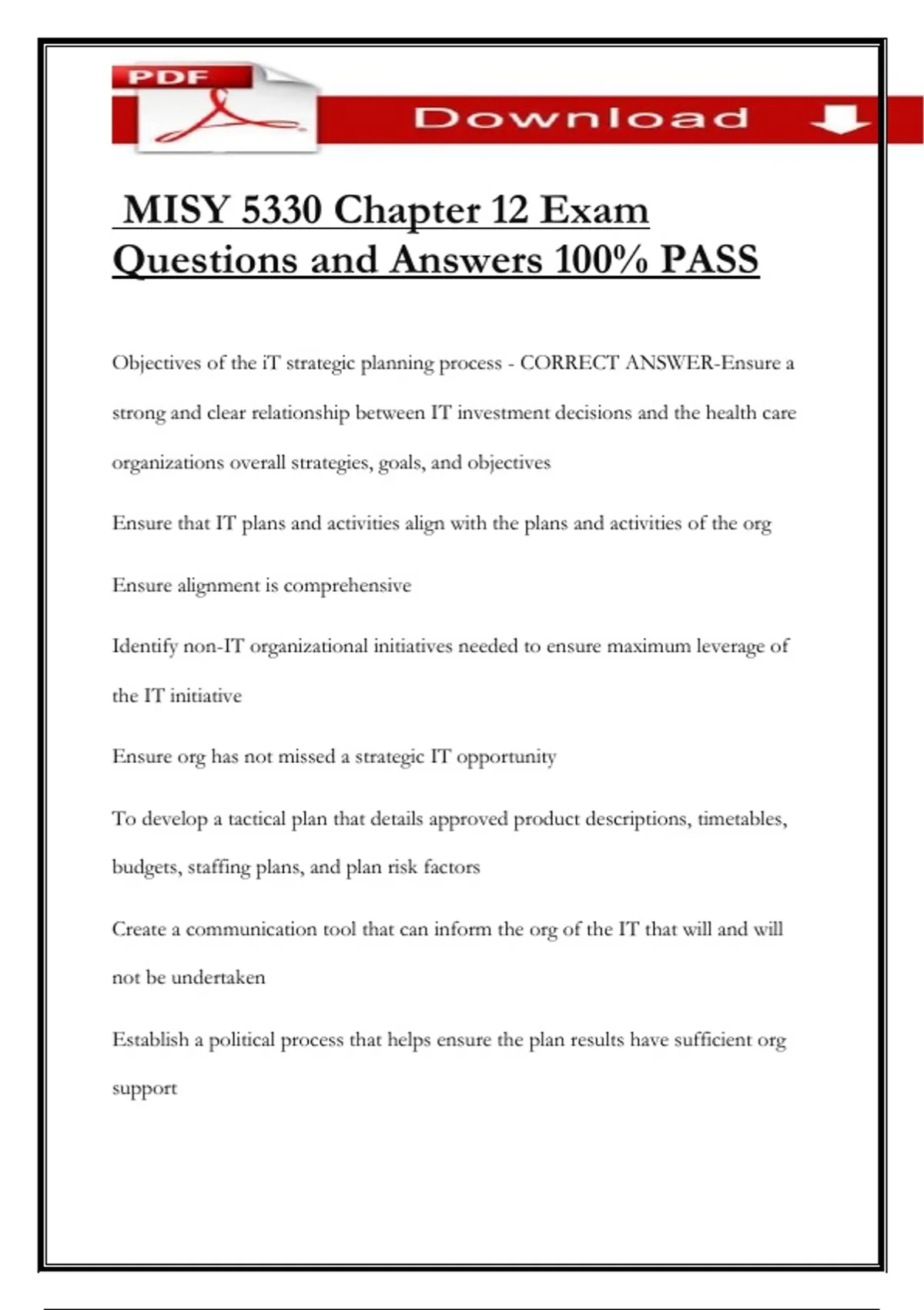 MISY 5330 Chapter 12 Exam Questions and Answers 100% PASS