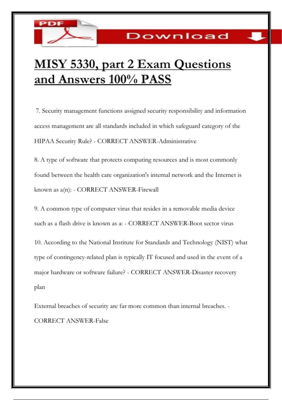 MISY 5330, part 2 Exam Questions and Answers 100% PASS