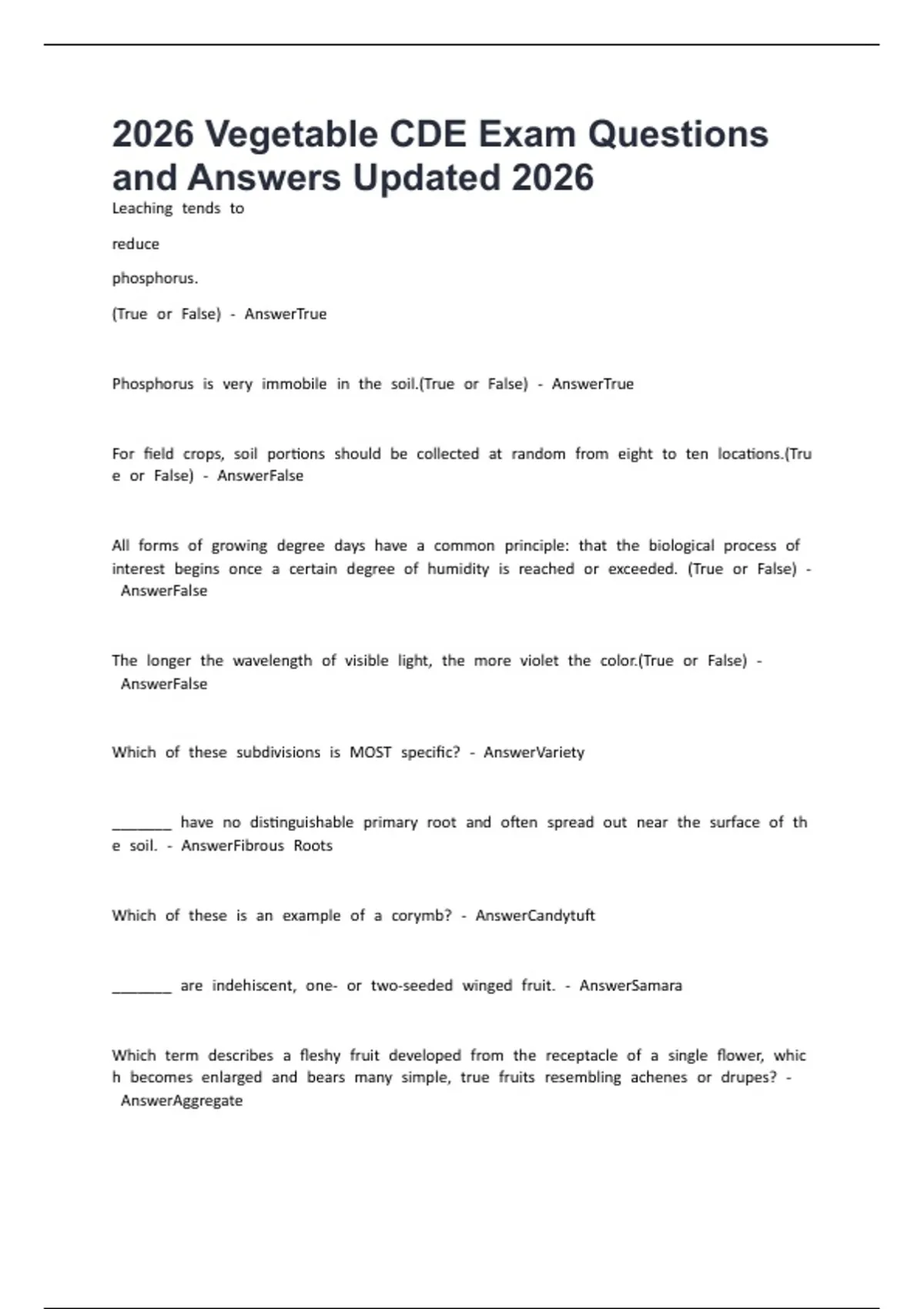 2026 Vegetable CDE Exam Questions and Answers Updated 2026
