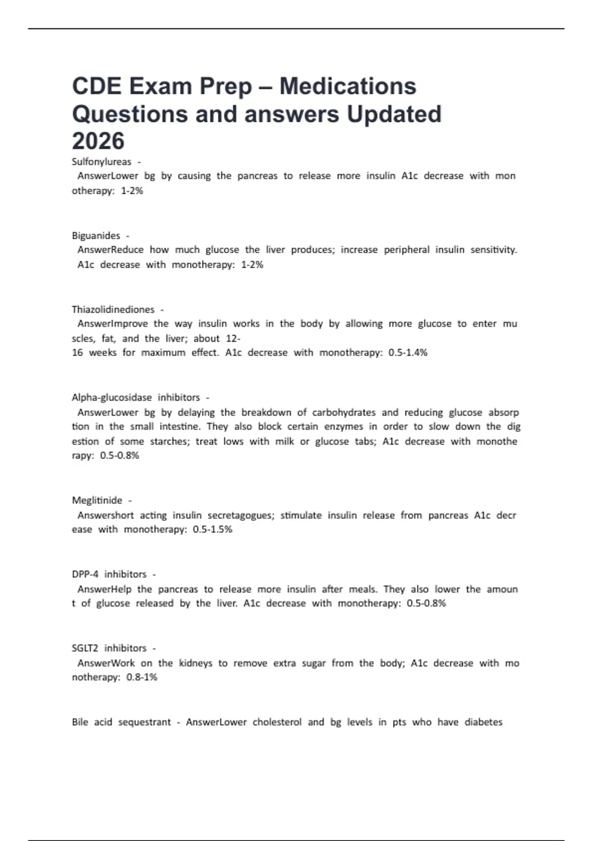 CDE Exam Prep – Medications Questions and answers Updated 2026