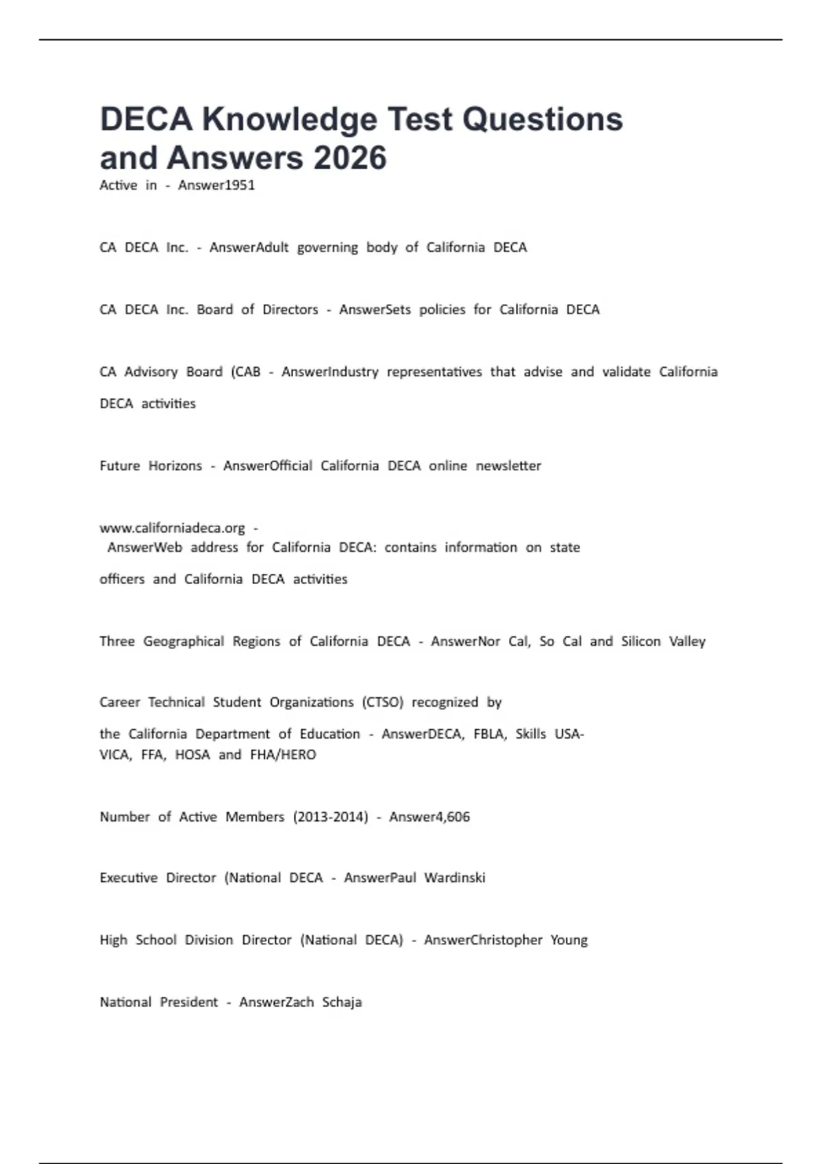 DECA Knowledge Test Questions and Answers 2026
