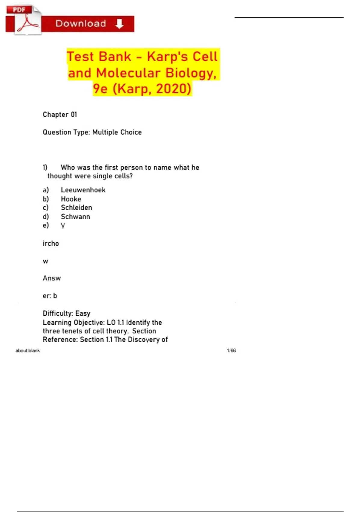 Test Bank - Karp's Cell