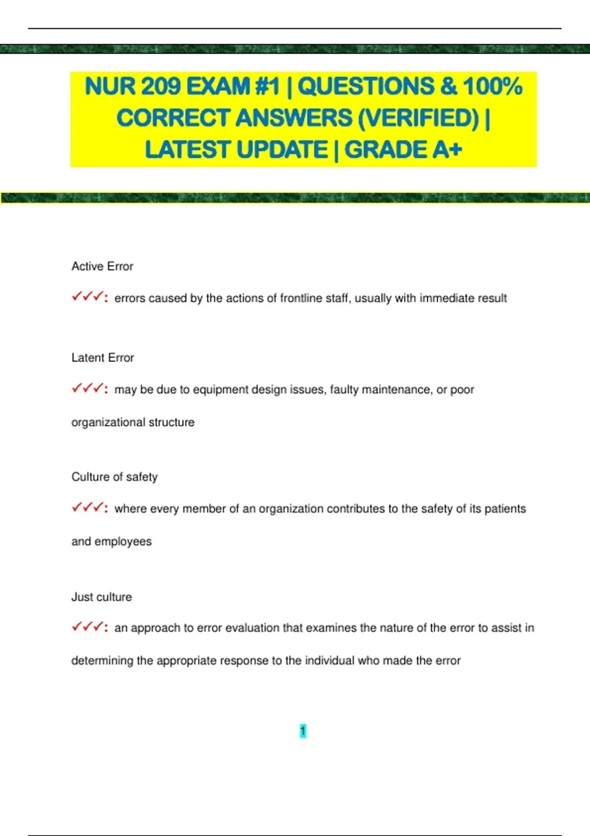 NUR 209 Exam 1 | Nursing Questions & Answers – Verified Study Resource