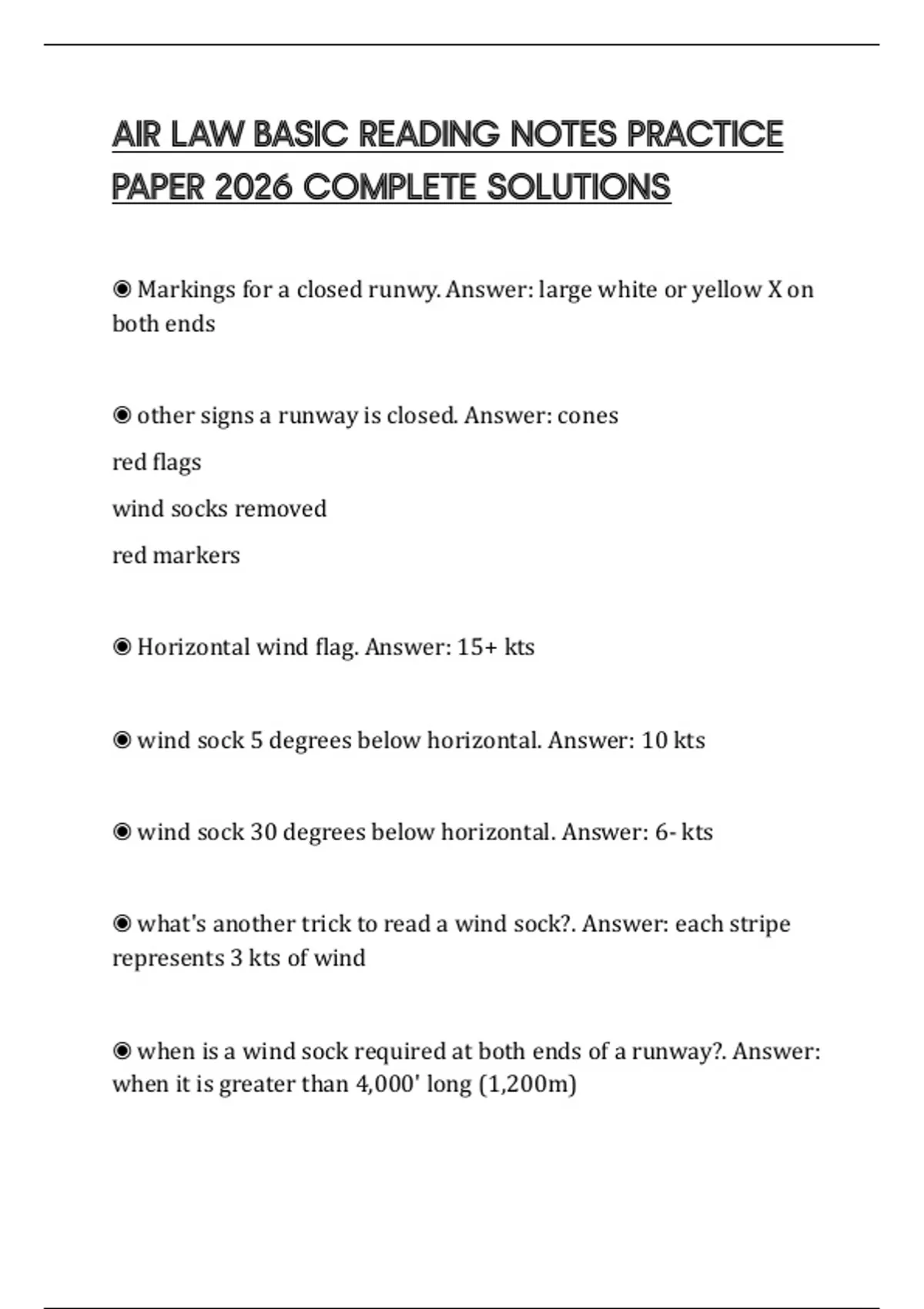 AIR LAW BASIC READING NOTES PRACTICE PAPER 2026 COMPLETE SOLUTIONS