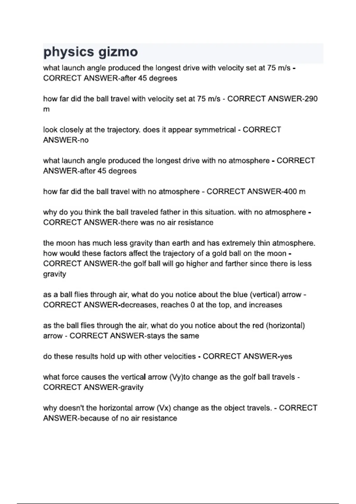 physics gizmo questions and answers