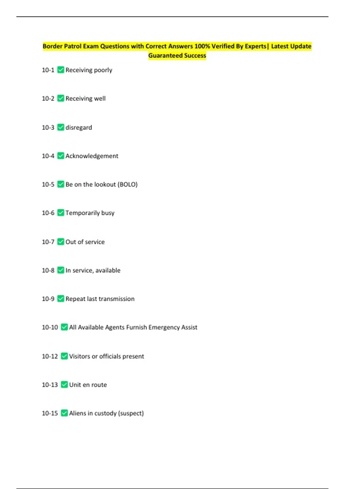 Border Patrol Exam Questions with Correct Answers 100% Verified By Experts| Latest Update