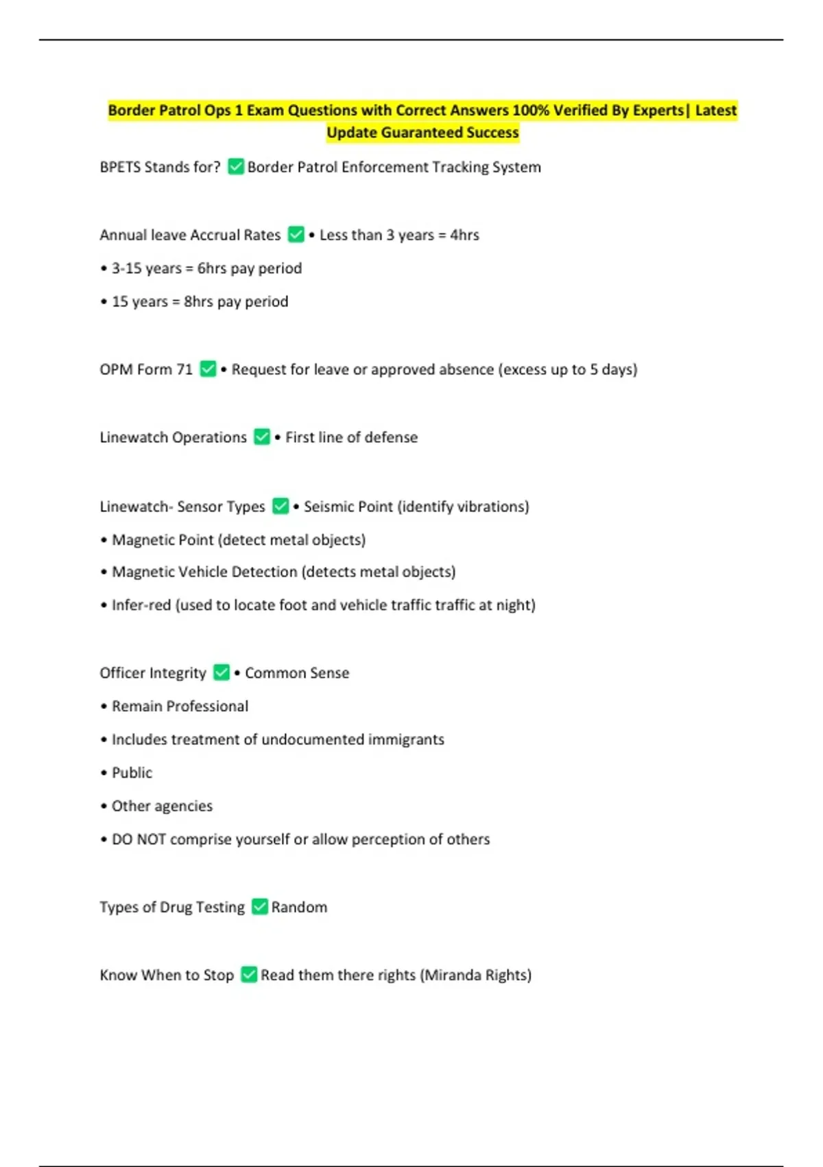 Border Patrol Ops 1 Exam Questions with Correct Answers 100% Verified By Experts| Latest