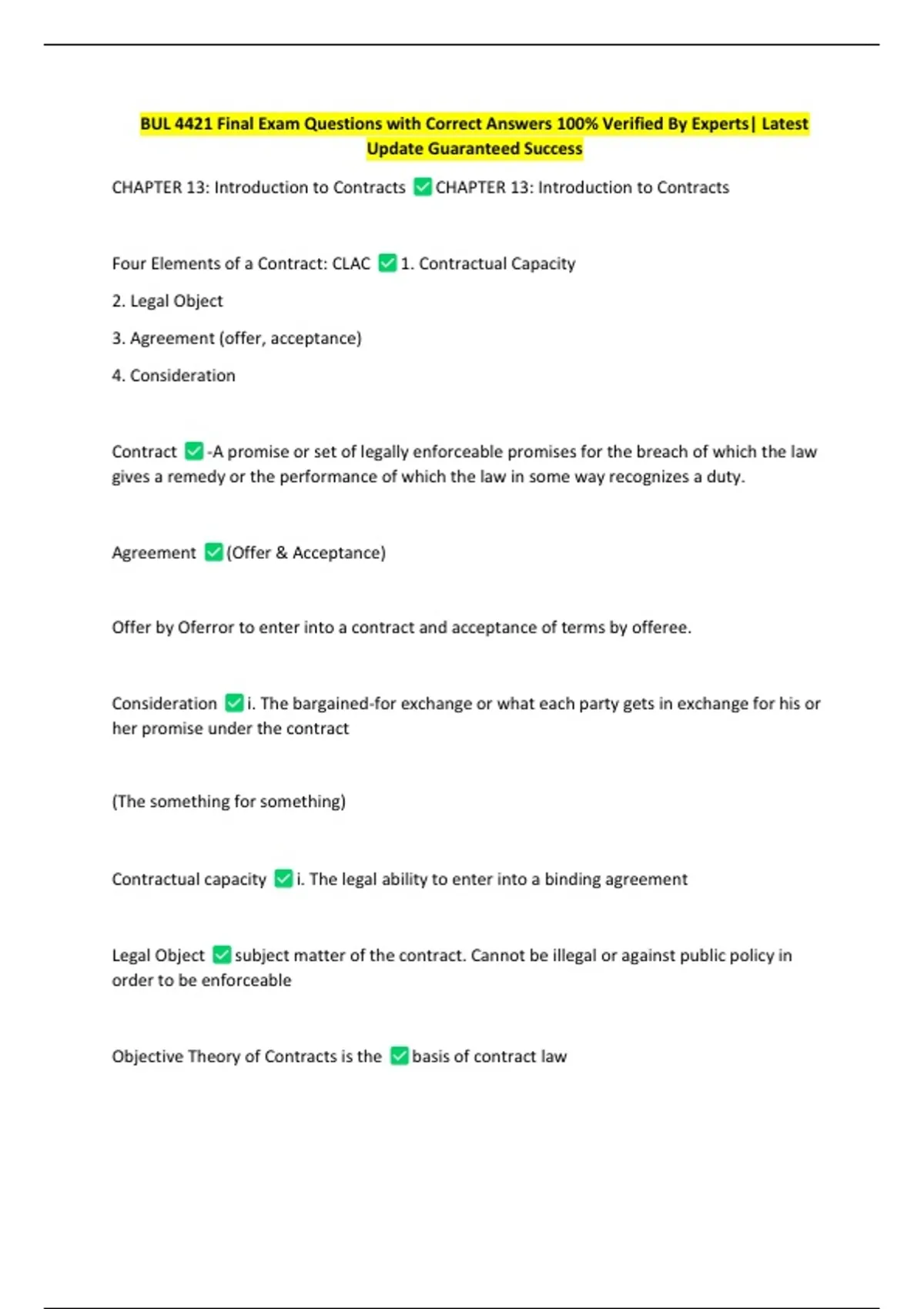 BUL 4421 Final Exam Questions with Correct Answers 100% Verified By Experts| Latest