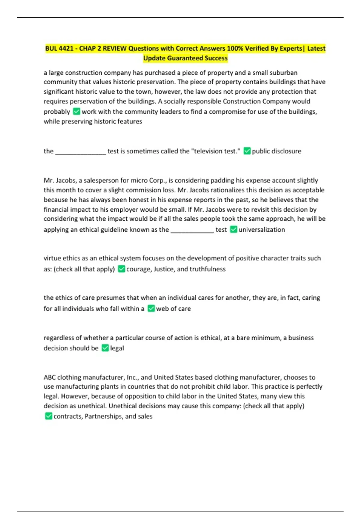 BUL 4421 - CHAP 2 REVIEW Questions with Correct Answers 100% Verified By Experts| Latest