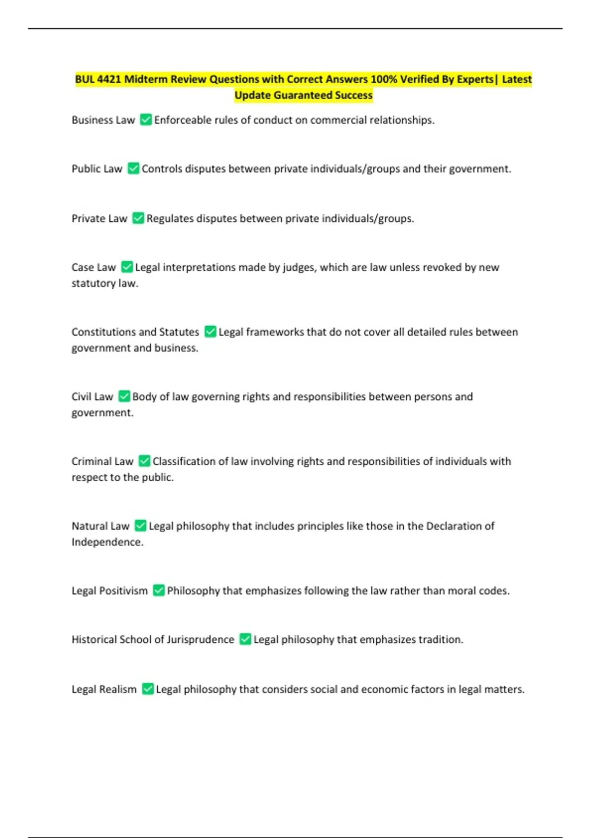 BUL 4421 Midterm Review Questions with Correct Answers 100% Verified By Experts| Latest