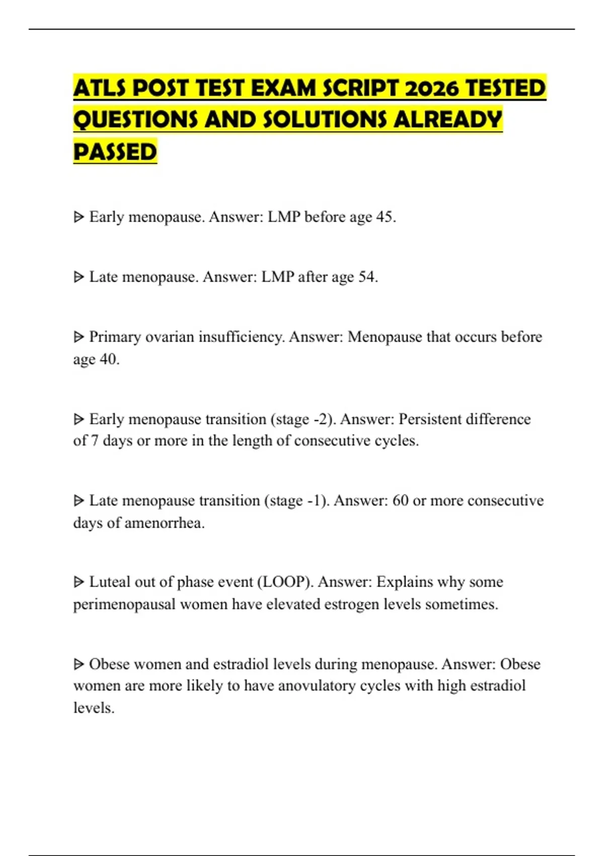 ⩥ Late menopause transition (-1) FSH level on random draw. Answer:
