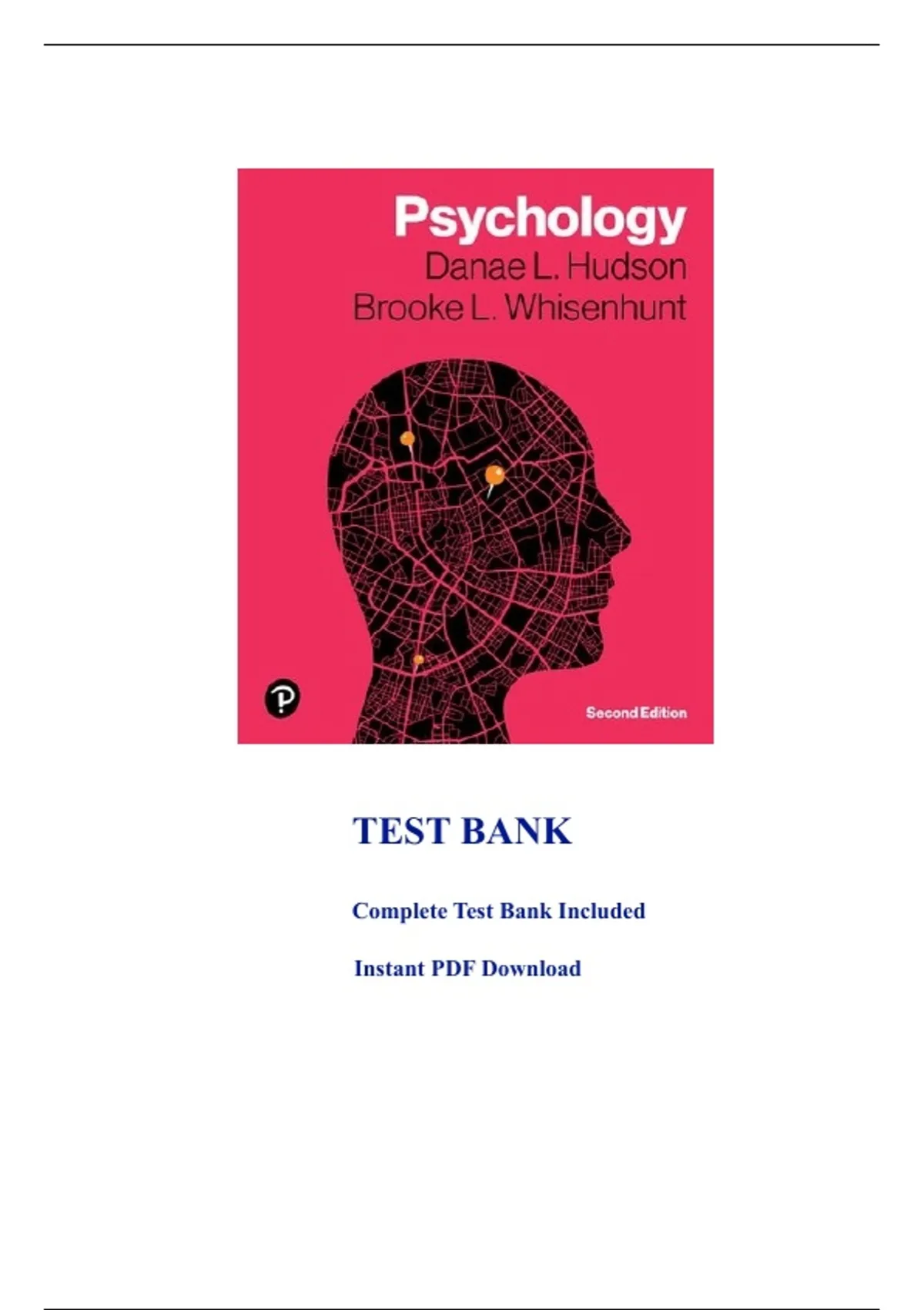 Complete Test Bank for Psychology, 2e 2nd Edition by Danae L. Hudson, Brooke L. Whisenhunt. All Chapters (Ch 1 to 16) are included with answers. Latest Instructor Exam Guide. ISBN 9780135329689 Psychology as a Science Neuroscience and the Biology of Behavior Sensation and Perception Consciousness Learning Memory Cognition and Language Intelligence Human Development Motivation and Emotion Human Sexuality and Gender Stress and Health Social Psychology Personality Psychological Disorders Therapy