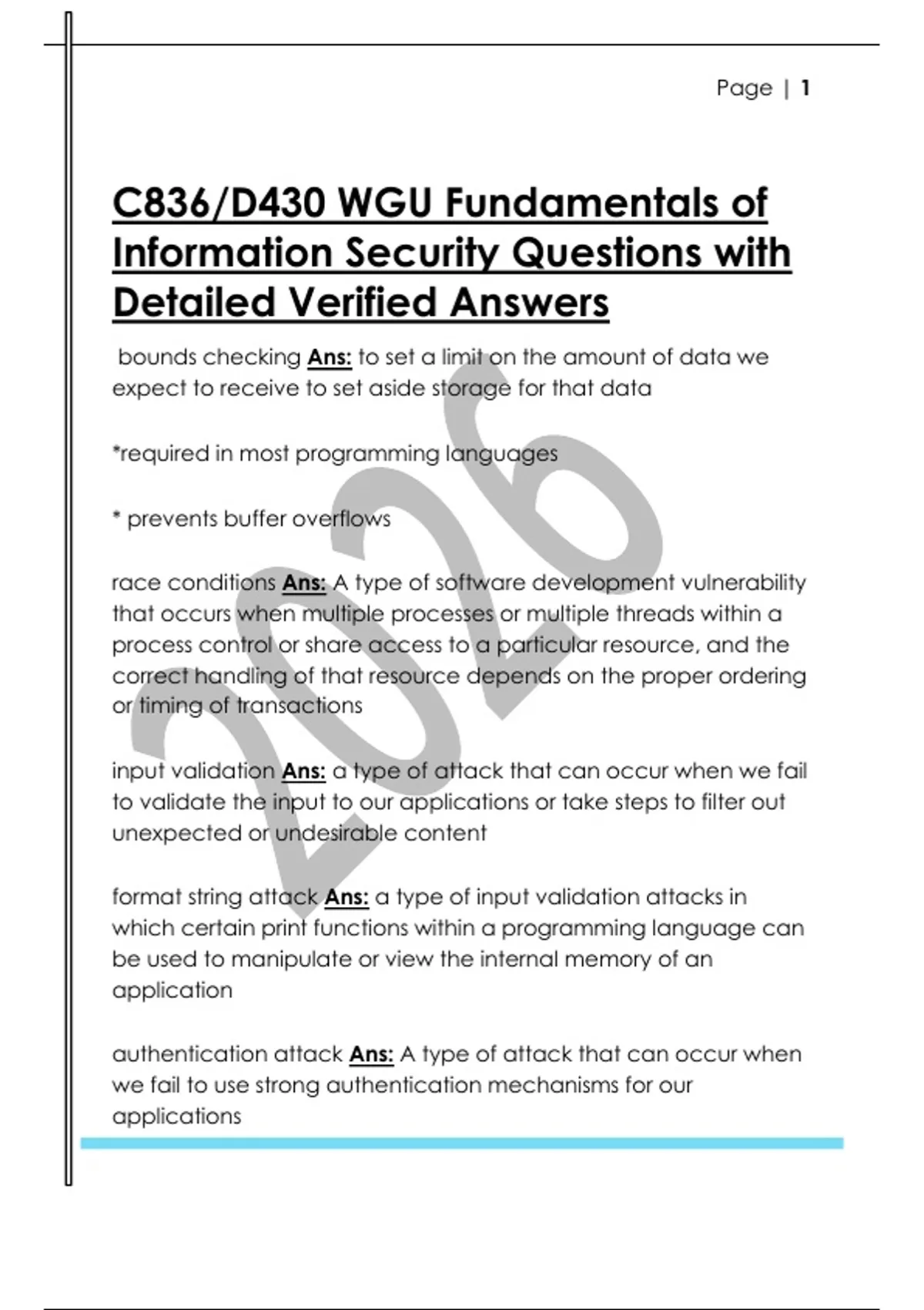 C836/D430 WGU Fundamentals of Information Security Questions with Detailed Verified Answers