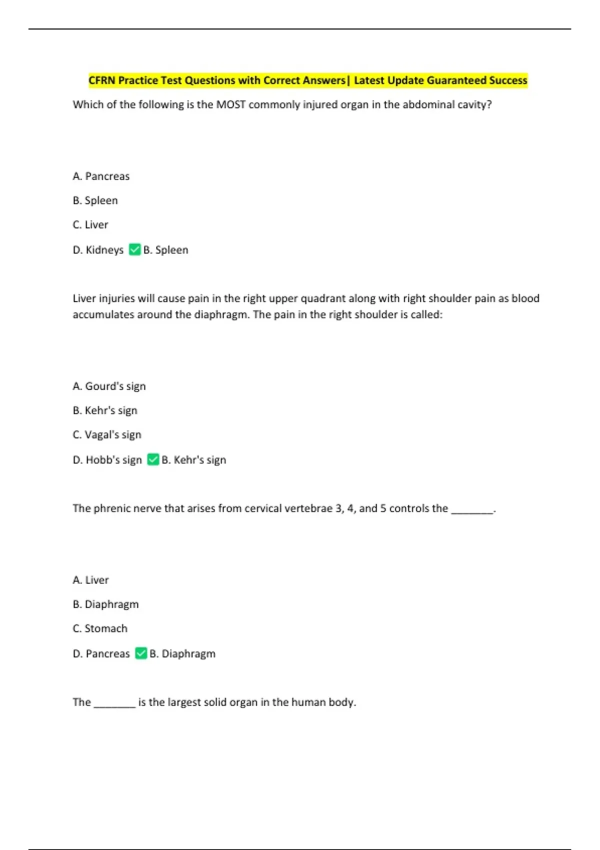 CFRN Practice Test Questions with Correct Answers| Latest Update