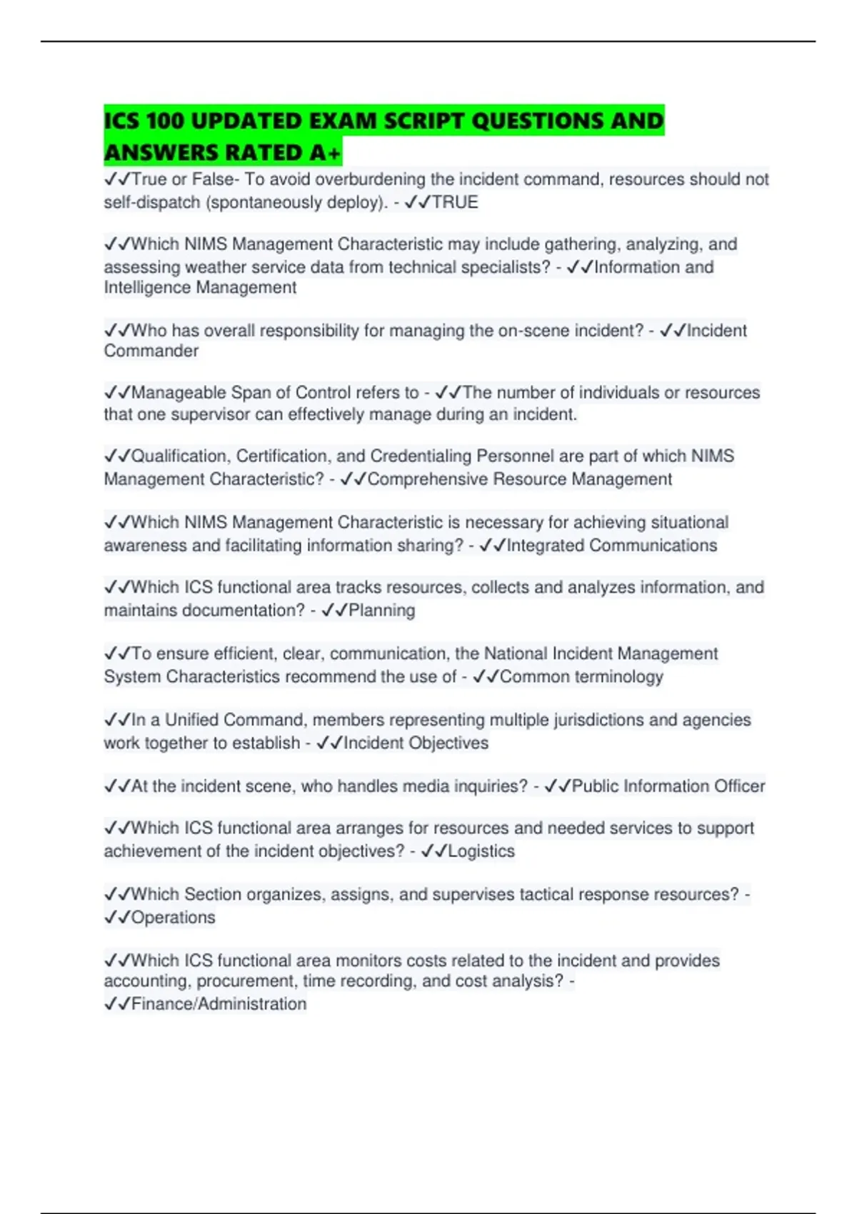 ICS 100 UPDATED EXAM SCRIPT QUESTIONS AND ANSWERS RATED A+
