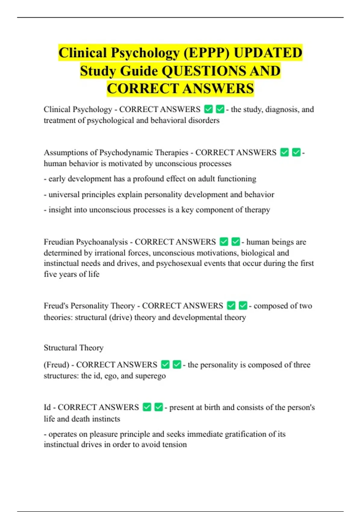 Assumptions of Psychodynamic Therapies - CORRECT ANSWERS -