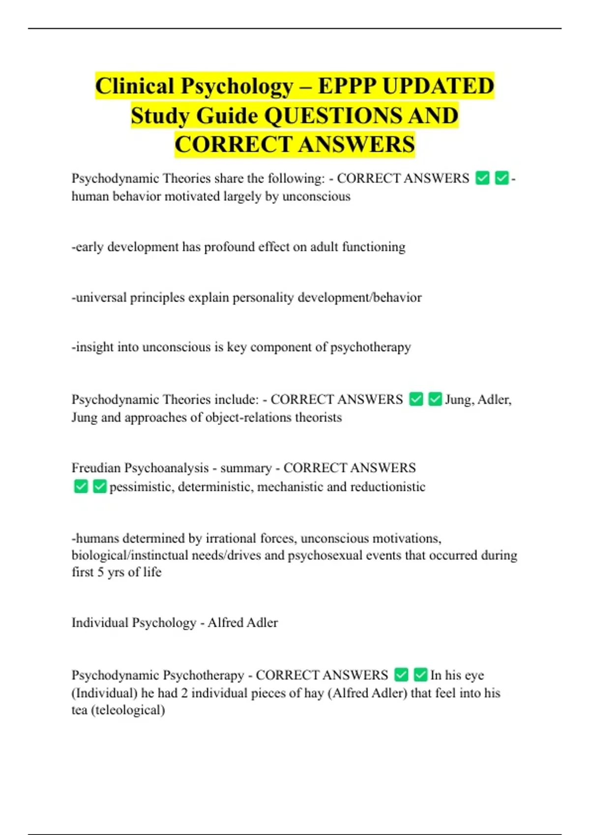 ,Psychodynamic Psychotherapy - CORRECT ANSWERS Jay (jung)