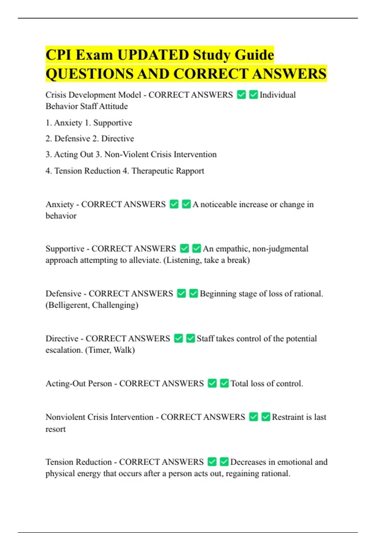 Nonviolent Crisis Intervention - CORRECT ANSWERS Restraint is last