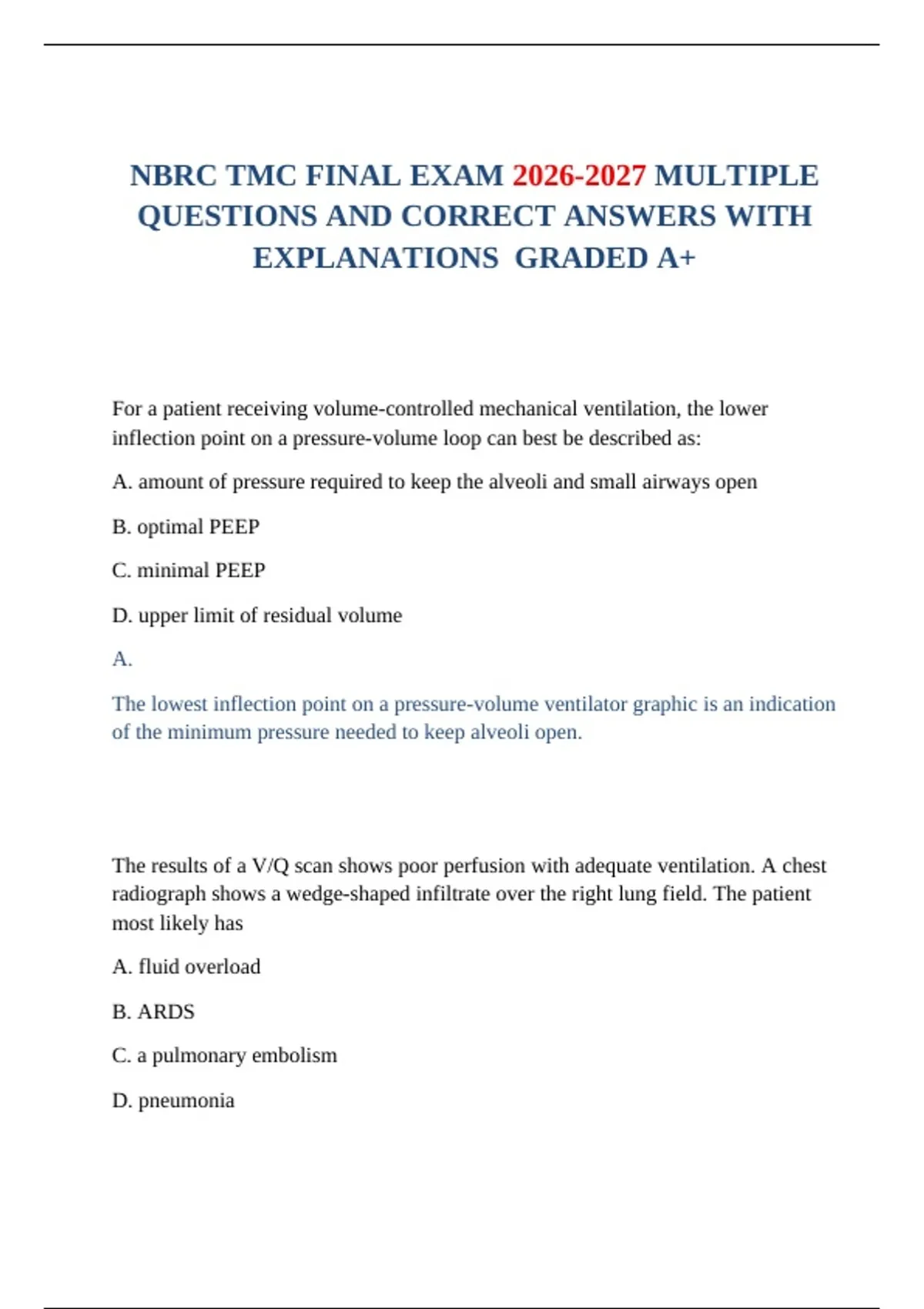 NBRC TMC FINAL EXAM MULTIPLE QUESTIONS AND CORRECT ANSWERS WITH EXPLANATIONS GRADED A+