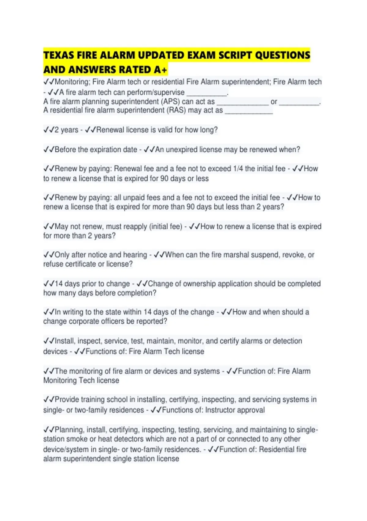 TEXAS FIRE ALARM UPDATED EXAM SCRIPT QUESTIONS AND ANSWERS RATED A+