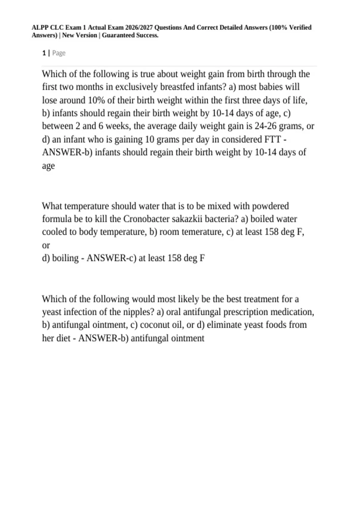 ALPP CLC Exam 1 Actual Exam 2026/2027 Questions And Correct Detailed Answers (100% Verified