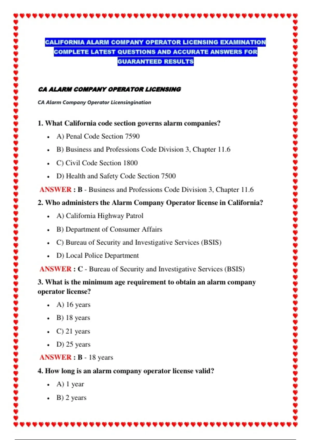 CA ALARM COMPANY OPERATOR LICENSING