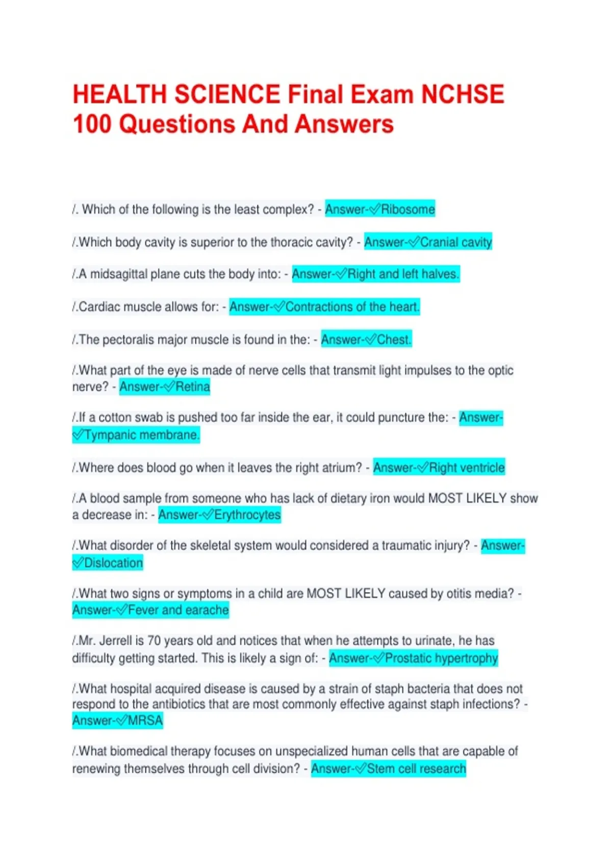 HEALTH SCIENCE Final Exam NCHSE 100 Questions And Answers