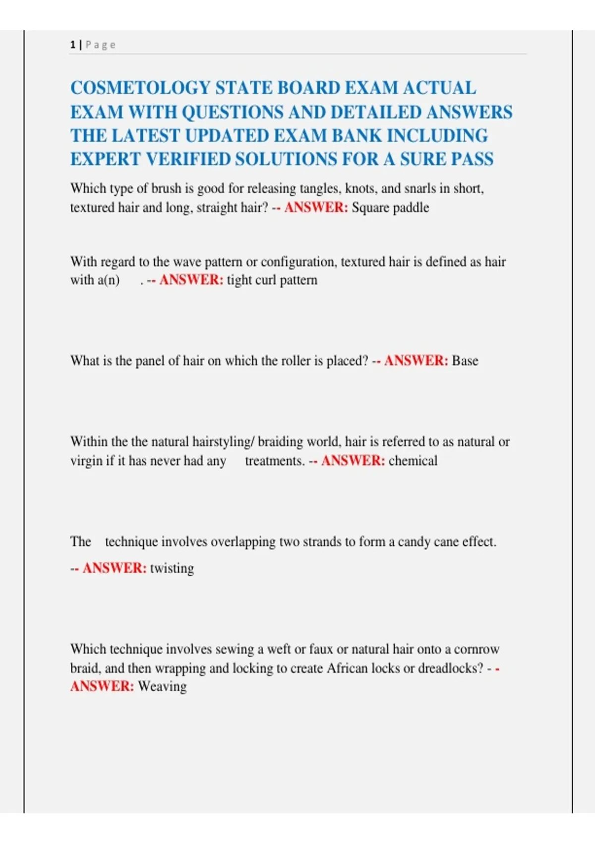 , A+ Grade Verified Answers with Rationales,Page 4 of 154 study year 2026//2027 Cosmetology state board exam.pdf